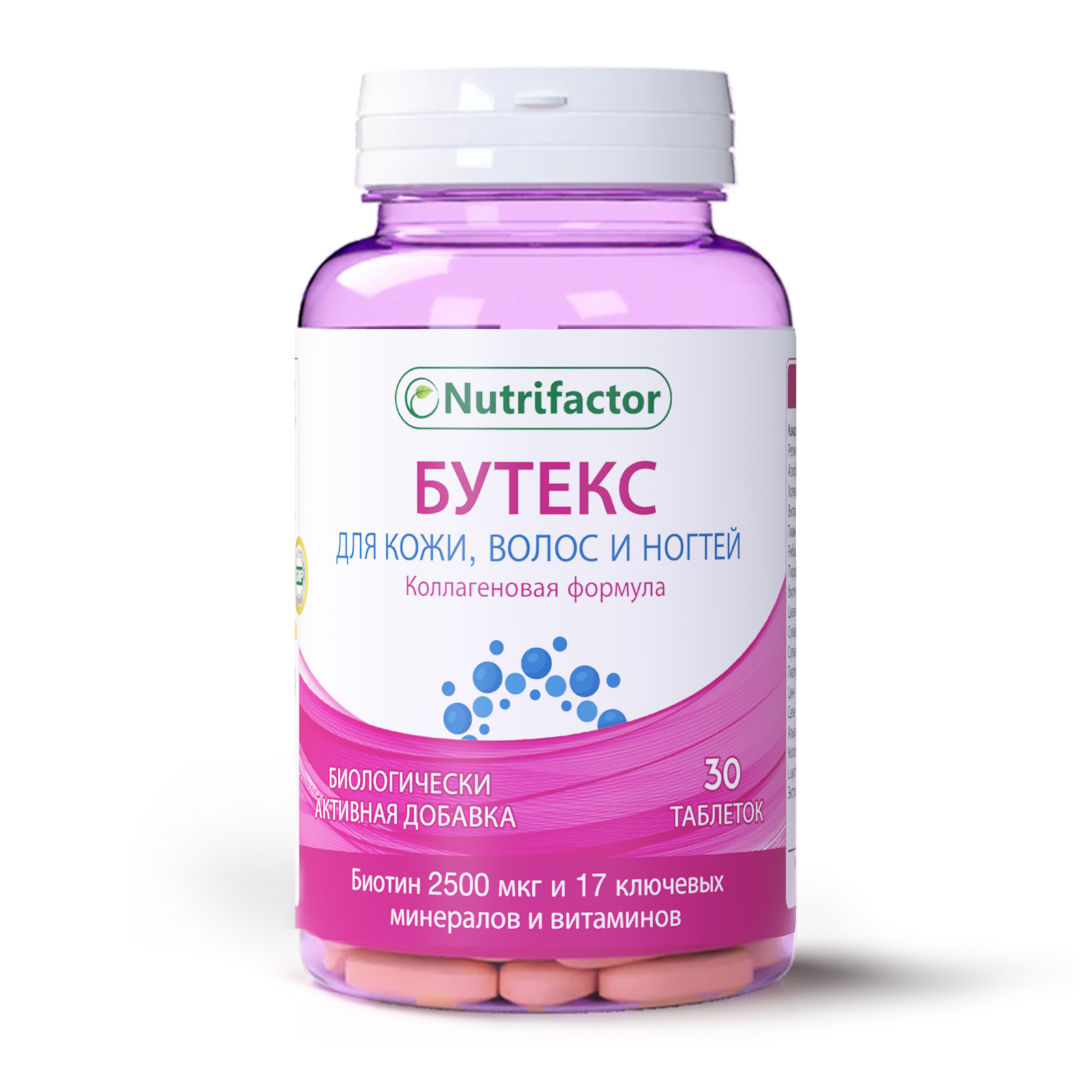 - В состав Butex от Nutrifactor входит комплекс из 17 жизненно важных витаминов и минералов, а также коллаген, который обеспечивает идеальный баланс питательных веществ для поддержания красоты волос, крепких ногтей и сияющей кожи. Эта уникальная формула содержит необходимые питательные вещества для поддержания естественной красоты изнутри.