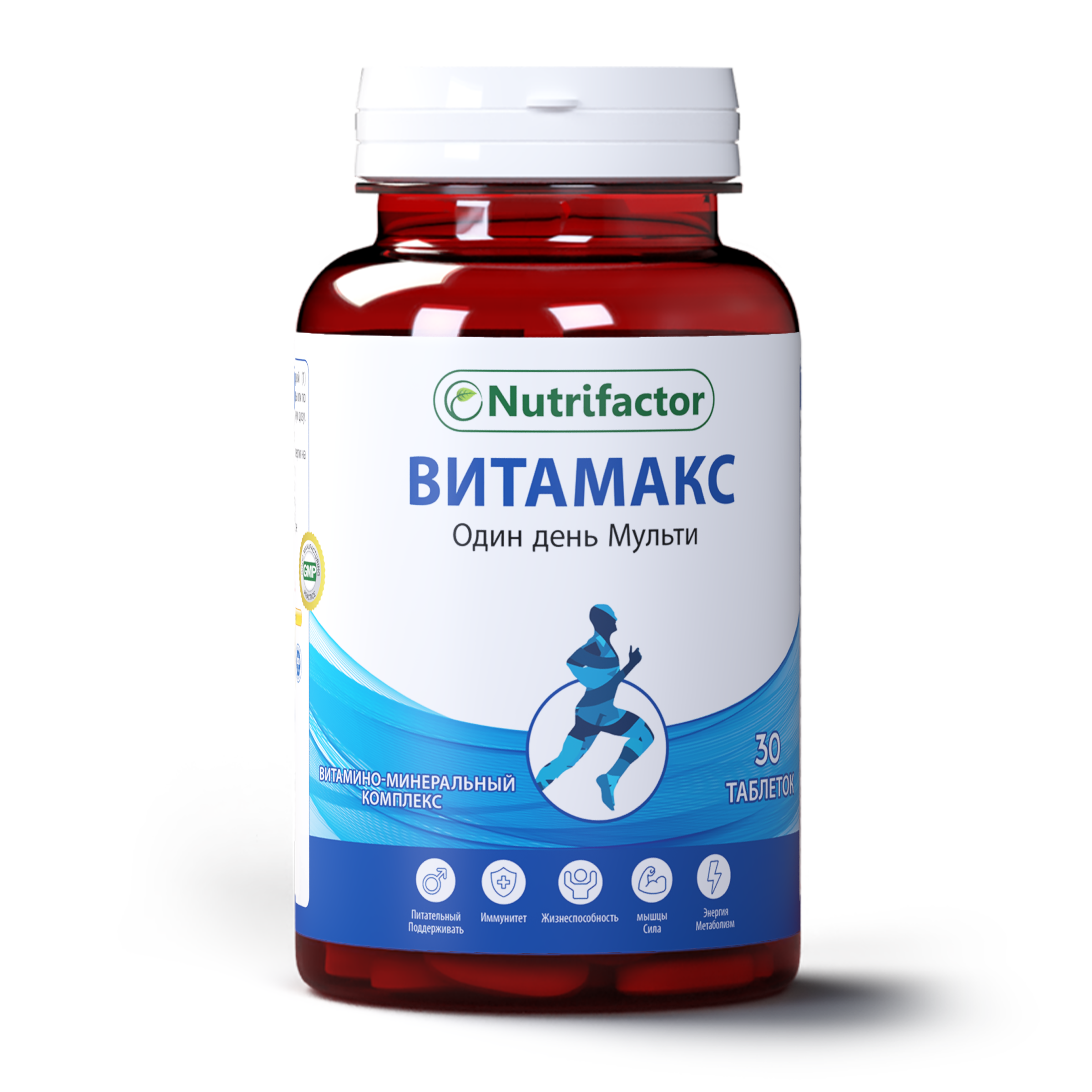 - Vitamax от Nutrifactor — это пищевая добавка, содержащая 19 жизненно важных питательных веществ, специально разработанная для ежедневной поддержки мужчин, которые играют важную роль в энергетическом обмене, укреплении иммунной системы и поддержании здоровья костей и мышц.